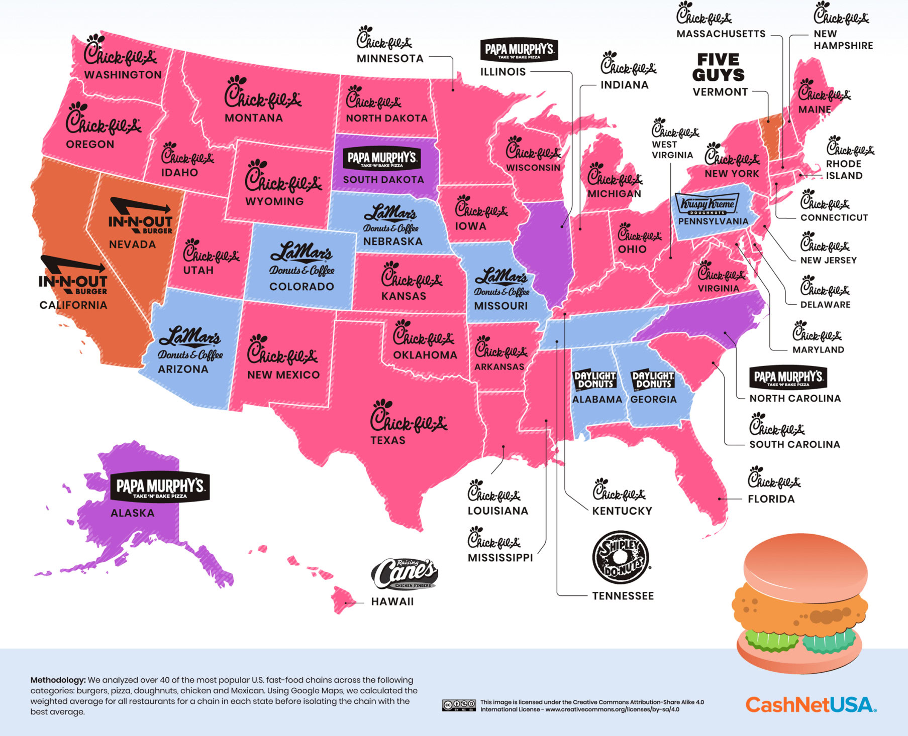 Iâm a sucker for fast food, so I was pretty interested to see Cash Net USAâs infographics on the top-rated and bottom-rated fast food chains in every state (h/t: Digg). The company identified the most well-known chains, located branches in each state and the most populous cities, and then analyzed their ratings on Google Maps.